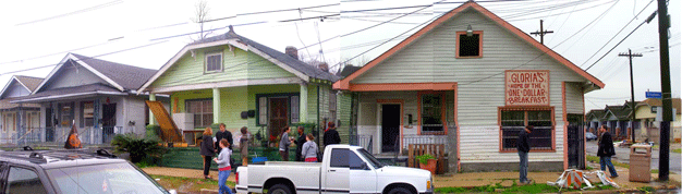 Gert Town has been faced with overwhelming social, environmental, and economic issues over the past one hundred years. Disinvestment and the effects of Hurricane Katrina have damaged the mix of residential and industrial buildings that compose the neighborhood. Adjacent to numerous single-family homes, Miss Gloria’s corner restaurant is one of a string of small businesses facing Broadway Street.